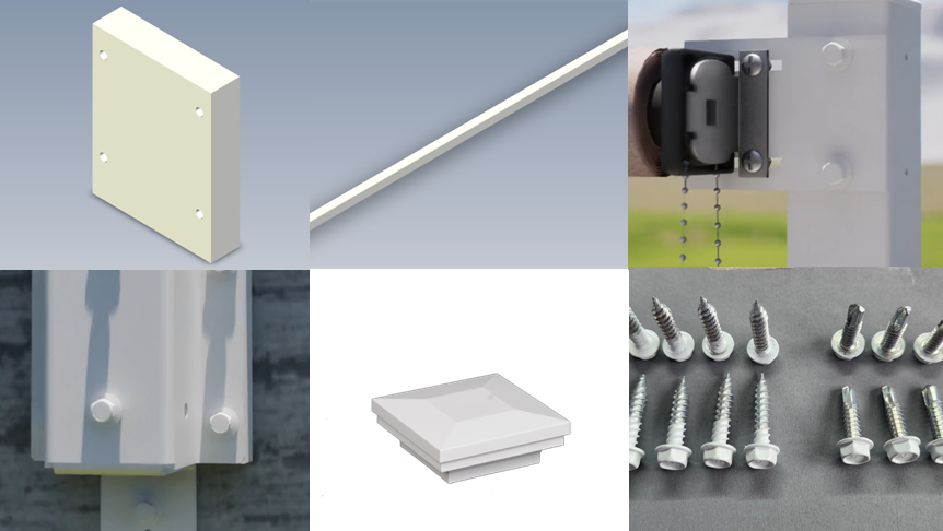 Finishes either end of a single shade, or acts as the end post for multiple connected shades.  Kit includes one post, one fascia mounting bracket, one upper shade end plate and all accessory parts.  Available in black or white.